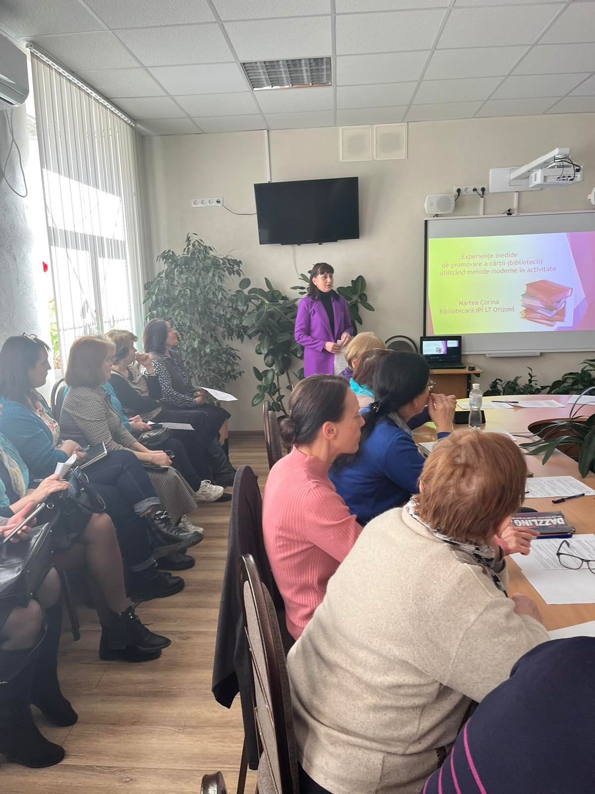 Și-au împărtășit din experiențele inedite de promovare a cărții, utilizând tehnici moderne de activitate a bibliotecarelor: Vera Andreev, LT „Academician C. Sibirschi”, Corina Hartea, Instituția Privată de Învățământ LT„Orizont”, Zinaida Slutu, IPLT „Spiru Haret”, Lidia Zavtoni, IPLT „Grătiești”, Eugenia Bahu, LT „Lucian Blaga”, Margareta Cebotari, specialist principal Biblioteca Națională a Republicii Mooldova. Evenimentul s-a desfășurat în incinta LT „Mihai Eminescu”.